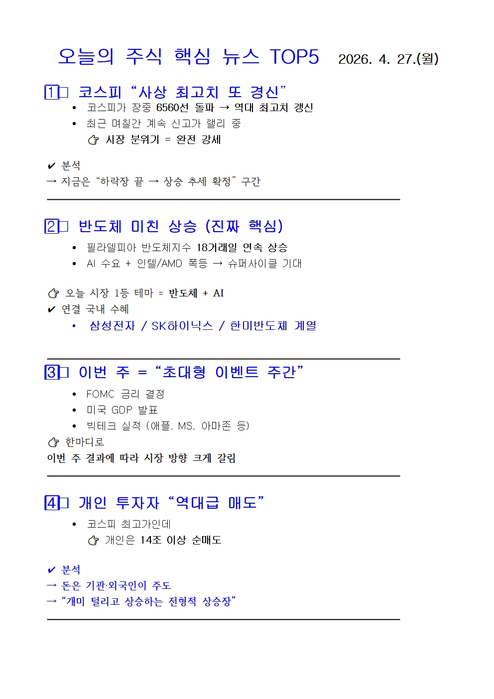 | 오늘의 주식 핵심 뉴스 TOP5 2026. 4. 28.(화) (0) | 2026.04.28 |